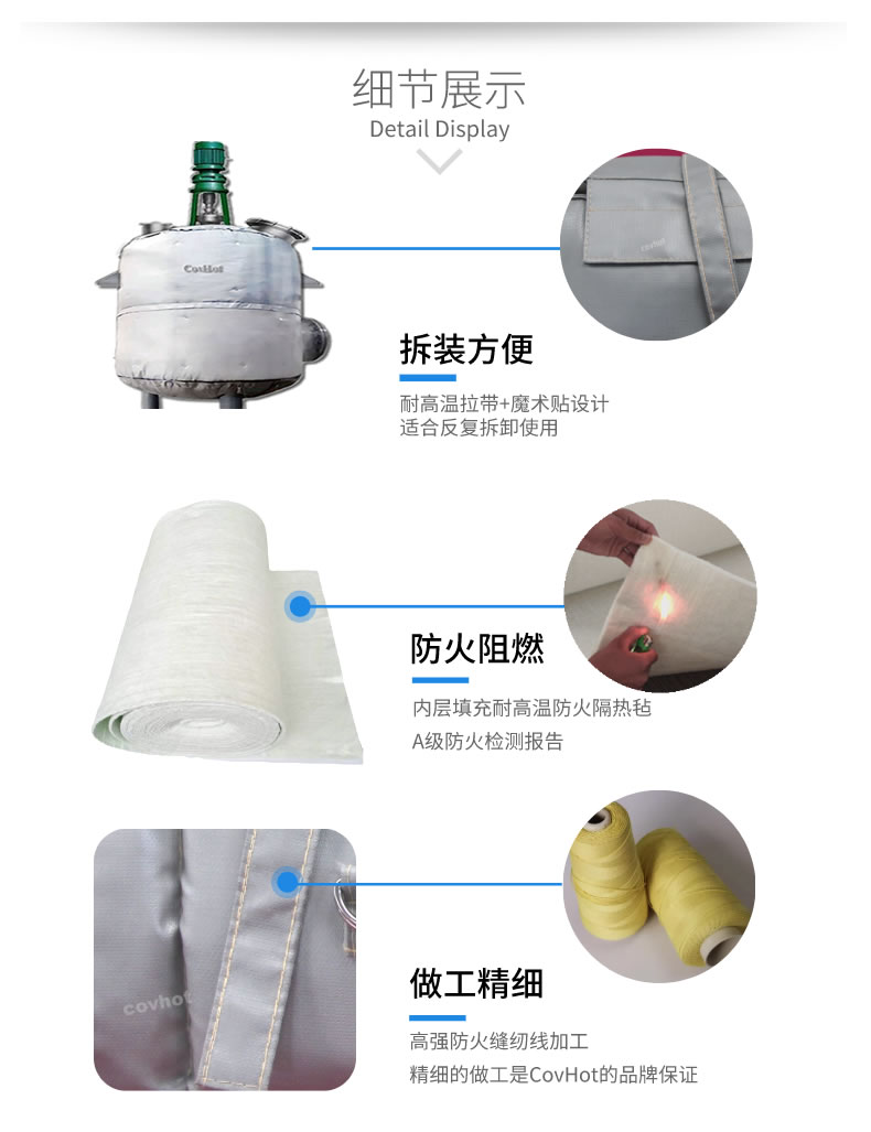 可拆卸柔性反應(yīng)釜保溫衣廠家 耐高溫550°C來圖定